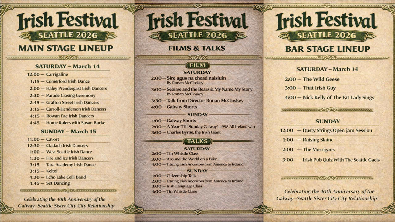 March 14, 2026 @ 12:00 pm - March 15, 2026 @ 6:00 pm at Seattle Center Armory Building by Irish Heritage Club Free