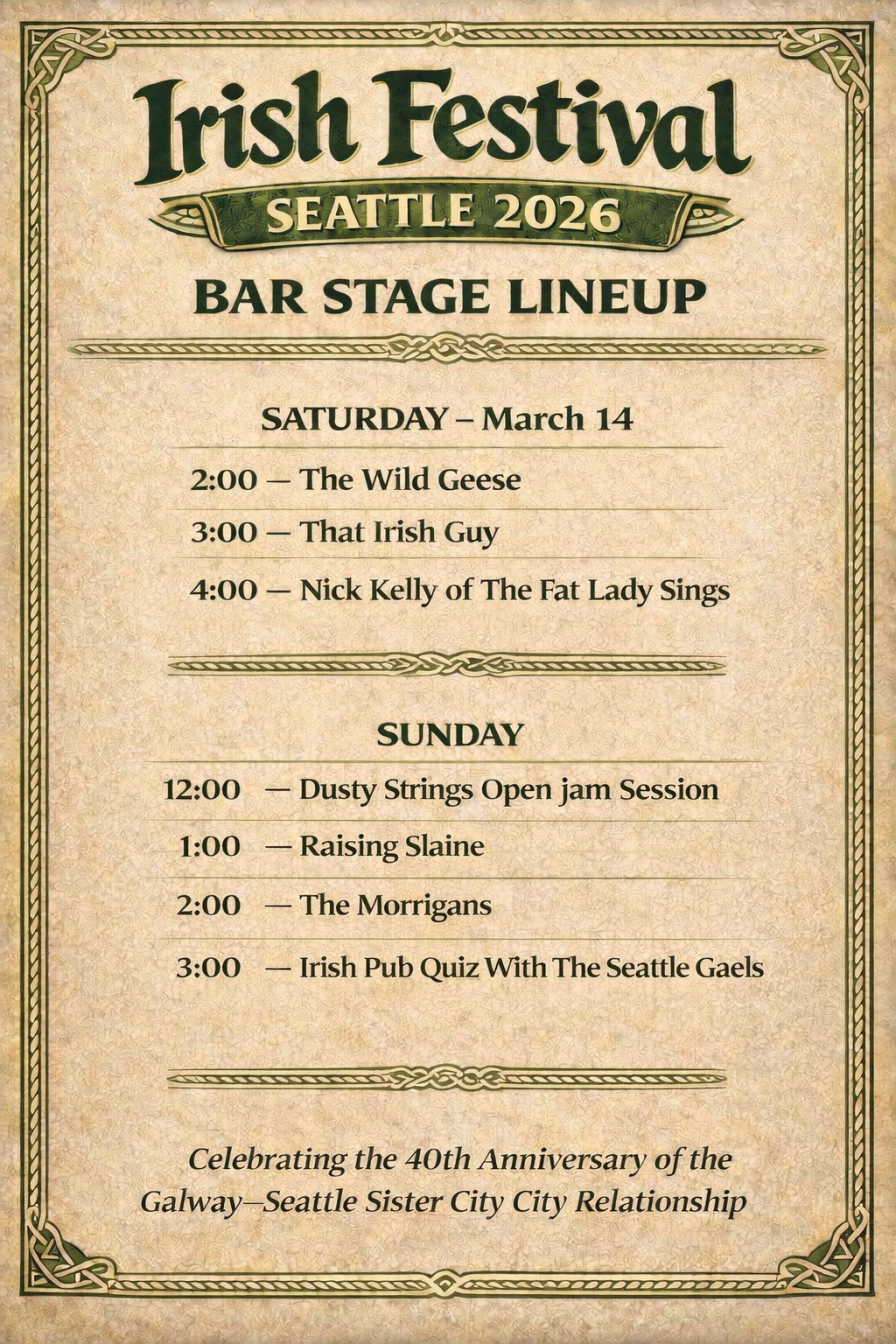 Join us for Irish Festival Seattle 2026, this two day festival at the end Irish Week is the largest celebration of Irish culture in the Pacific Northwest!